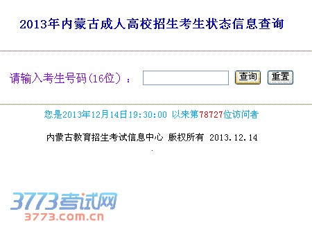 内蒙古教育招生考试信息中心2013年内蒙古成人高校招生考生状态信息查询