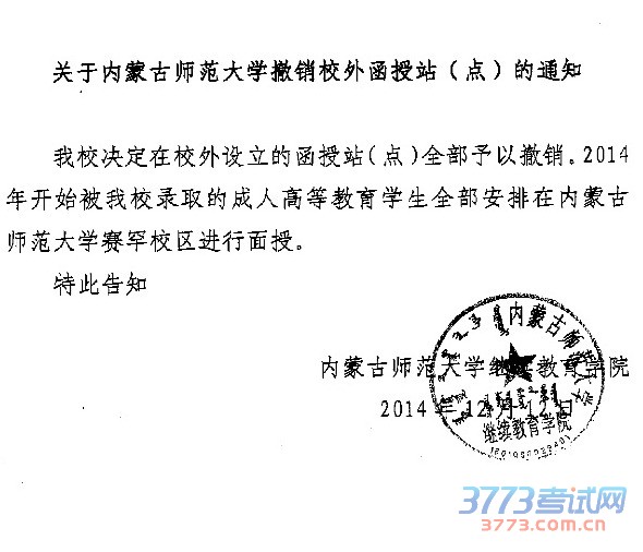 [图文]内蒙古师范大学成教撤销校外函授站点的通知