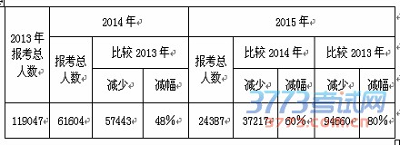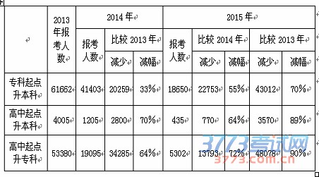 纵观近年来我区成人高考报名情况,人数逐年下降,且降幅较大,如下表1、2所示: