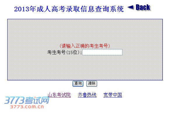 山东省2013年成人高考录取查询 2013年成人高考录取信息查询系统