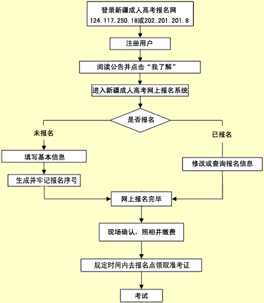 1、网上填报信息前,须详细了解新疆维吾尔自治区成人高校招生政策、报名办法和学校的招生计划情况。