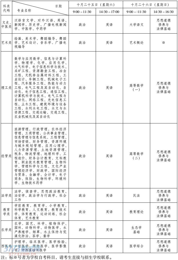 2、艺术类考试科目为:政治、英语、艺术概论、专业课由学校自行组织考试;