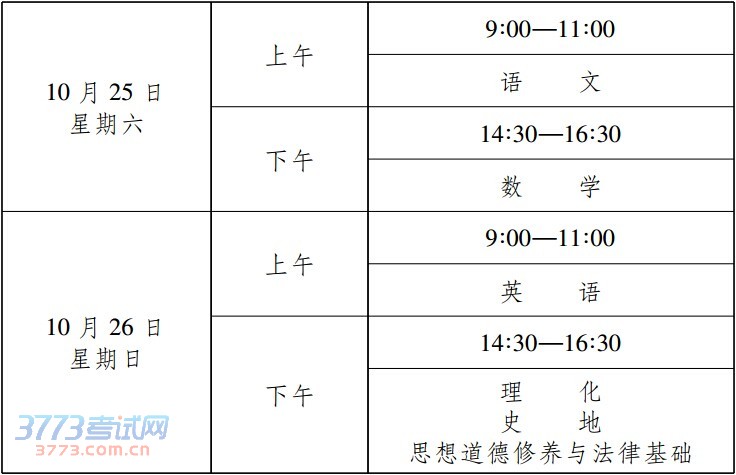 理工类 (含体育、艺术、外语)考语文、数学 (理工类)、英语、理化 (物理、化学综合)四科 (艺术类专业数学考试成绩不计入总分,供录取时参考;英语考试成绩将单独划线)。文史类 (含财经、政法、外语、艺术、体育)考语文、数学 (文史类)、英语、史地 (历史、地理综合)四科 (艺术类专业数学考试成绩不计入总分,供录取时参考,英语考试成绩将单独划线)。