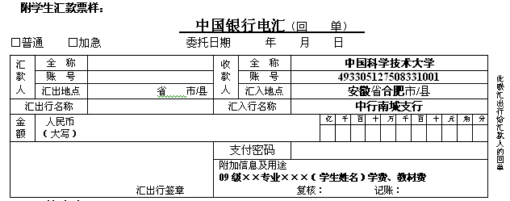 收款单位:中国科学技术大学 帐 号:493305127508331001