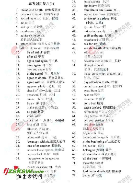 相关文章 2010年成考专升本英语模拟试题(图)2010年成人高考高起点英语同义词解析2010年成人高考高起点英语高频词四2010年成人高考高起点英语高频词三2010年成人高考高起点英语高频词二2010年成人高考高起点英语高频词一2010年成人高考高起点英语:语音知识2010年成人高考高起点英语:词汇知识2010年成人高考高起点英语:语法知识2010年成人高考高起点英语:完形填空 触屏版 电脑版 3773考试网 琼ICP备12003406号-1