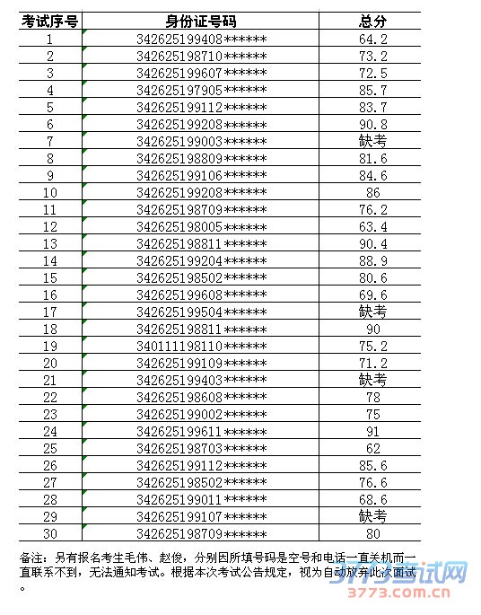 [图文]安徽含山县城市管理行政执法局2015招聘执法辅助人员面试成绩公示