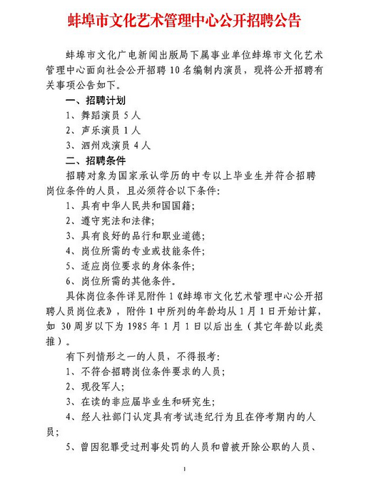 [组图]安徽蚌埠市文化艺术管理中心2015年招聘公告