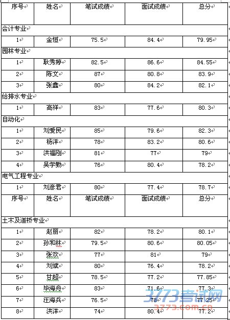 经过4月25日集团统一笔试、面试(各占50%的比例)得出的综合成绩,按照成绩由高到低排列,最终共有18位应聘人员入围,现将名单及考试成绩公布如下: