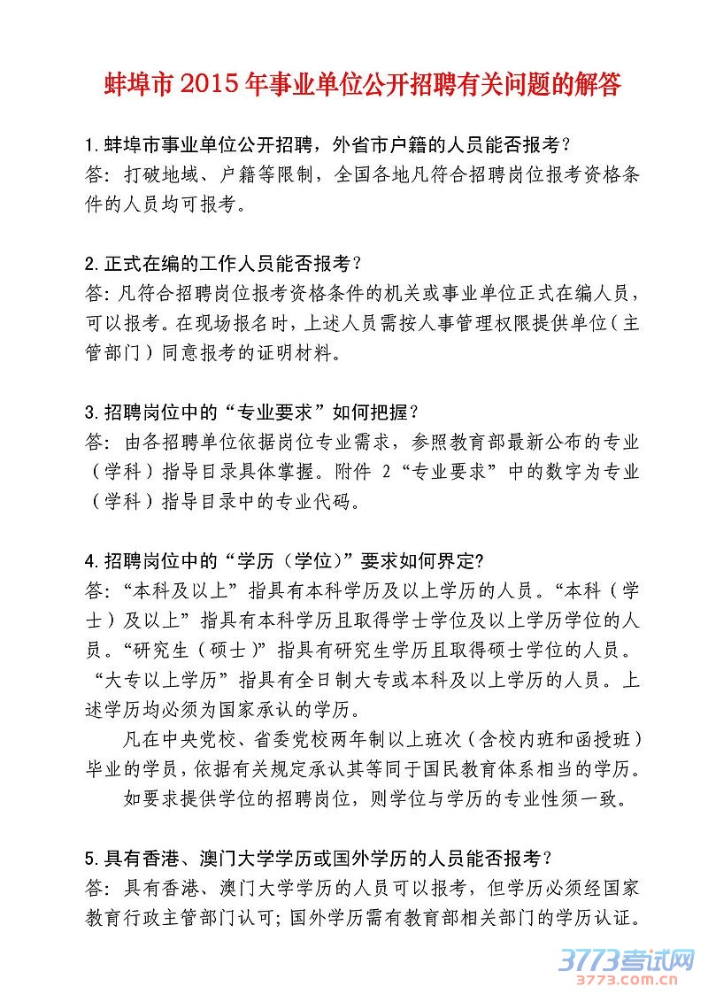 [图文]2015年安徽蚌埠市事业单位招聘有关问题的解答