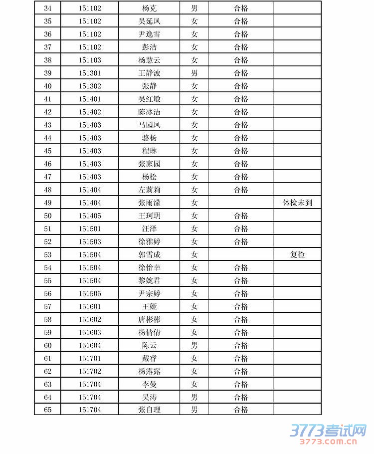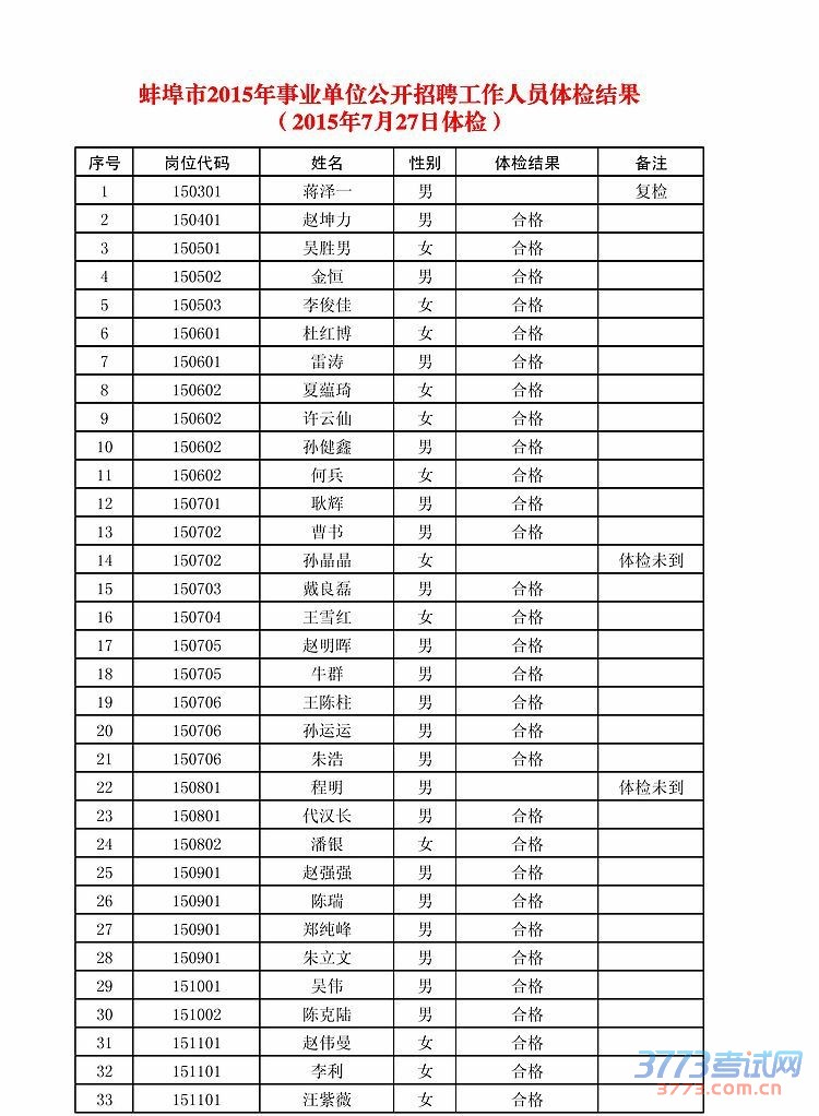[组图]2015年安徽蚌埠市事业单位招聘工作人员体检结果