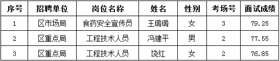 根据《瑶海区公开招聘工作人员公告》规定,因聘用人员未能按时到岗,视为自动放弃聘用资格,从该岗位面试人选中按面试成绩从高分到低分等额有效递补。现将递补人员名单公告如下:
