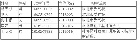 淮北市2016年公开招聘事业单位工作人员第二批考察对象名单