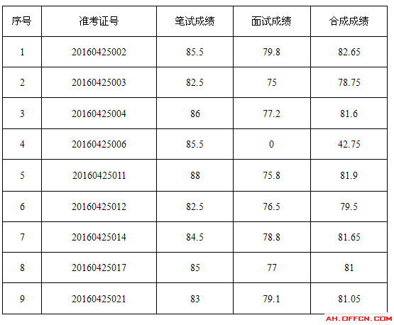 [图文]马鞍山含山县招标采购监督管理局2016招聘笔试、面试及合成成绩公示