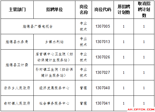 [图文]2016安徽宣城旌德县事业单位招聘取消岗位计划数公告