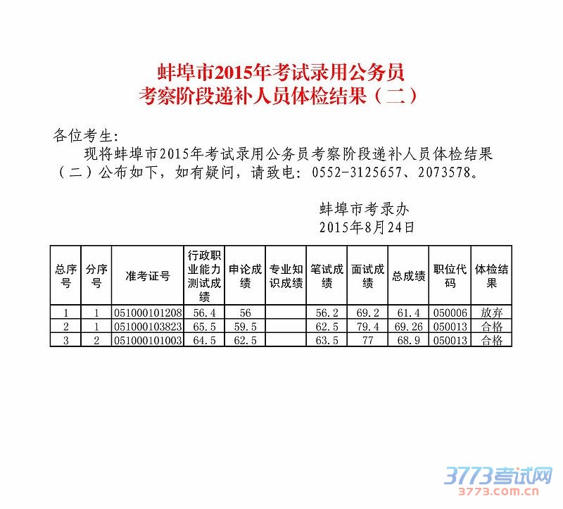 [图文]2015年安徽蚌埠市公务员考察阶段递补人员体检结果(二)