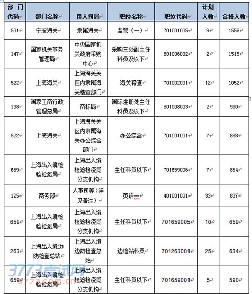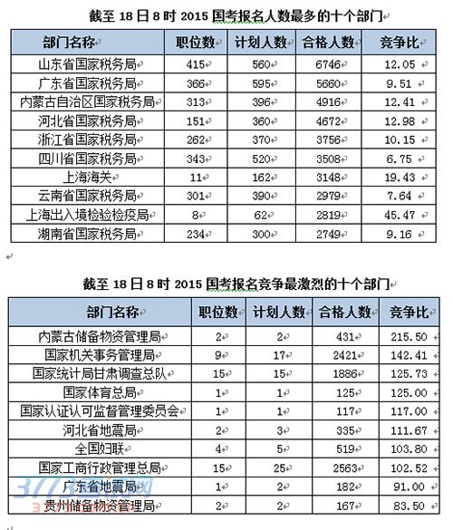 截至18日8时2015国考报名报名人数最多的十个职位