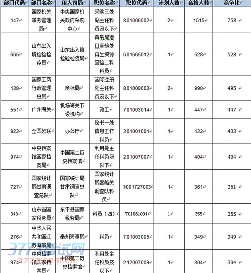 截至18日8时2015国考报名竞争比最高的十个职位