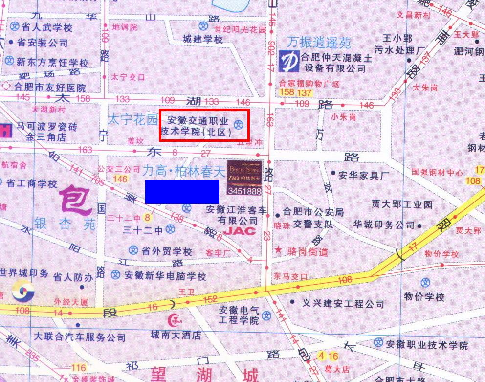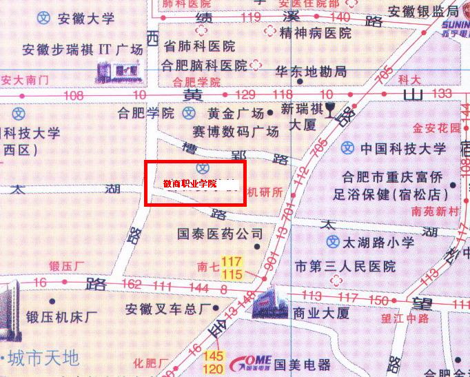 14 | 安徽交通职业技术学院 | 查看地图 | 合肥市太湖东路19号 | 0551-3417215 | 8、27、124、163(五里冲站 133、145(太湖路鱼花池 ) 17、138、902(马鞍山路合家福购物广场) |