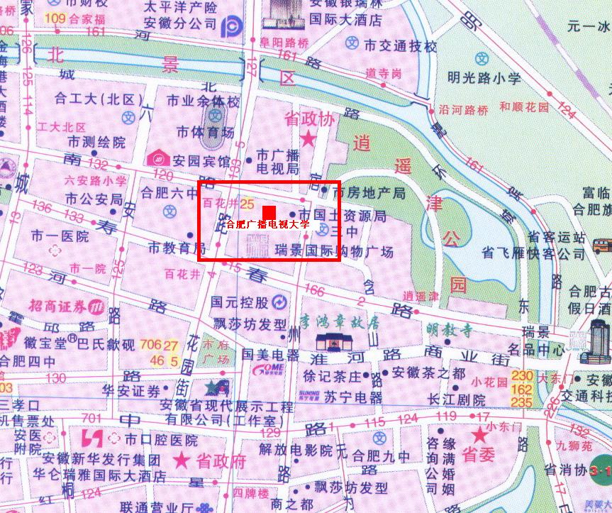 8 | 合肥广播电视大学 | 查看地图 | 合肥市阜南路15号 | 0551-2691091 | 2、4、10、14、15、123、131、127(百花井站) |
