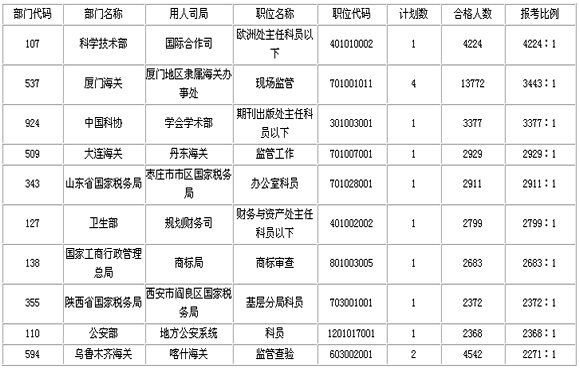四、2010年国家公务员考试竞争最激烈的十大职位