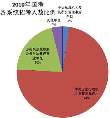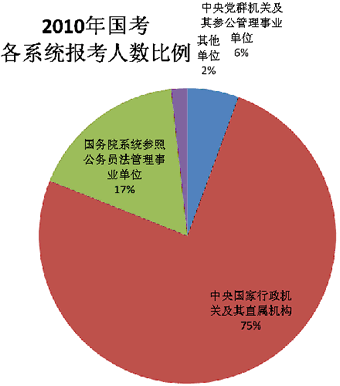 从上图中可以看出,2010年国家公务员考试各系统的招录人数和报考人数所占比例基本吻合。而从各系统的招报比例来看,各系统之间的差距也在逐渐缩小。