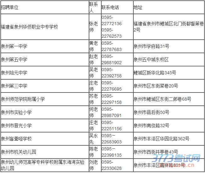 详见《2016年泉州市直公立学校公开招聘教师岗位信息表》(附件1)。