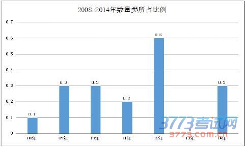 从图中可以看出数量类在历年考试中大约要占到30%左右,所以各位考生必须高度重视。