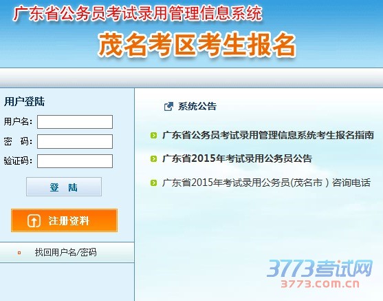2015广东茂名公务员考试报名入口