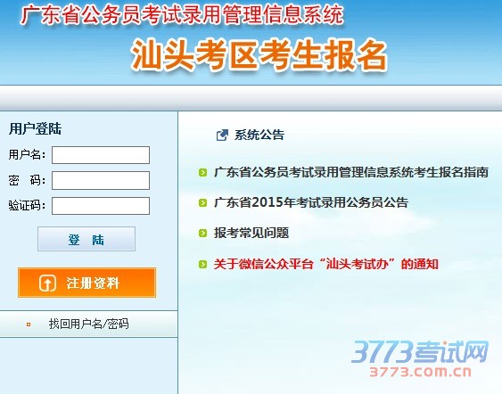 一、网上报名时间为2015年2月9日9︰00至2月15日16︰00,网上缴费截止时间为2月16日16︰00。考生应认真阅读《广东省2015年考试录用公务员公告》,选择符合资格条件的职位进行报名。考生报名时应如实填写资料、上传本人近期正面免冠电子证件照片(jpg格式,20Kb以下)。所填资料与事实不符的,责任由考生自负。