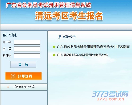 2015广东清远公务员考试报名入口