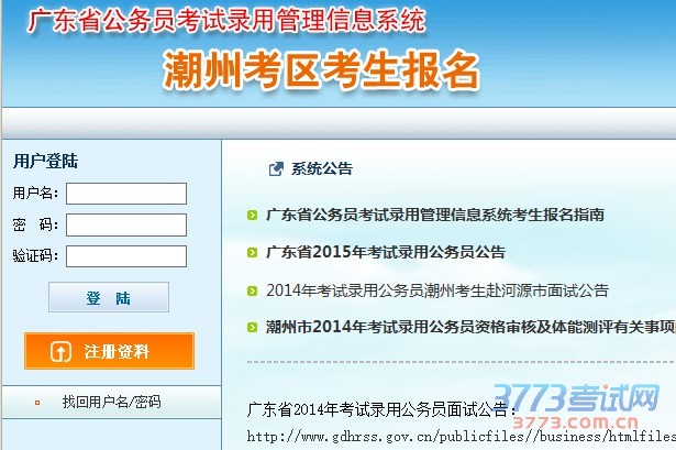 2015广东潮州公务员考试报名入口