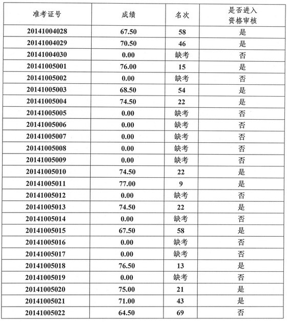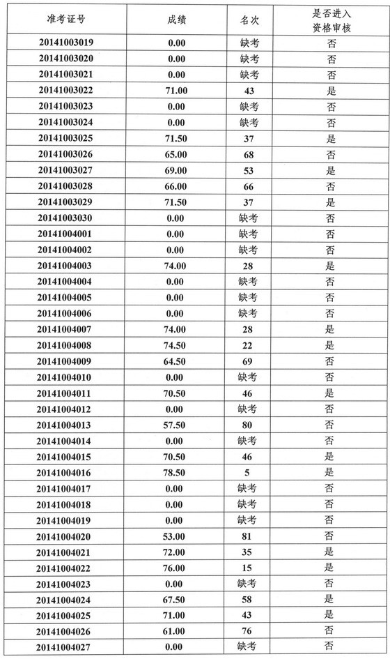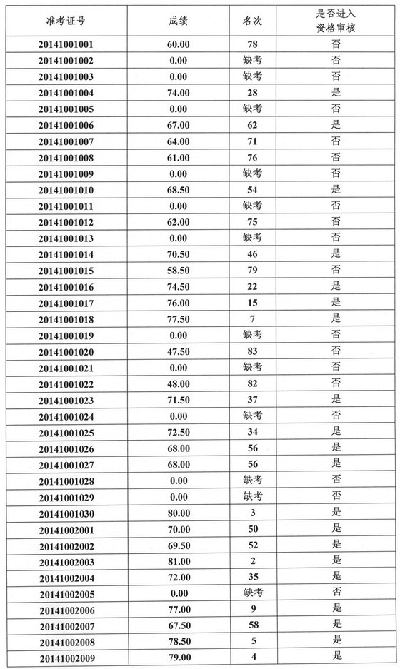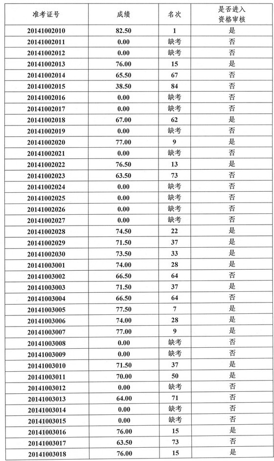 2014年白云区公开招聘党建工作指导员笔试成绩及进入资格审核人员名单