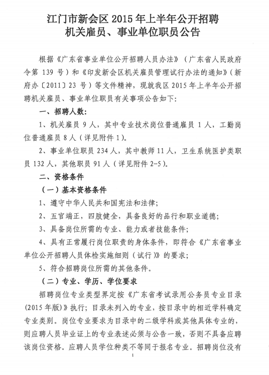 [组图]2015广东江门新会区事业单位招聘243人公告