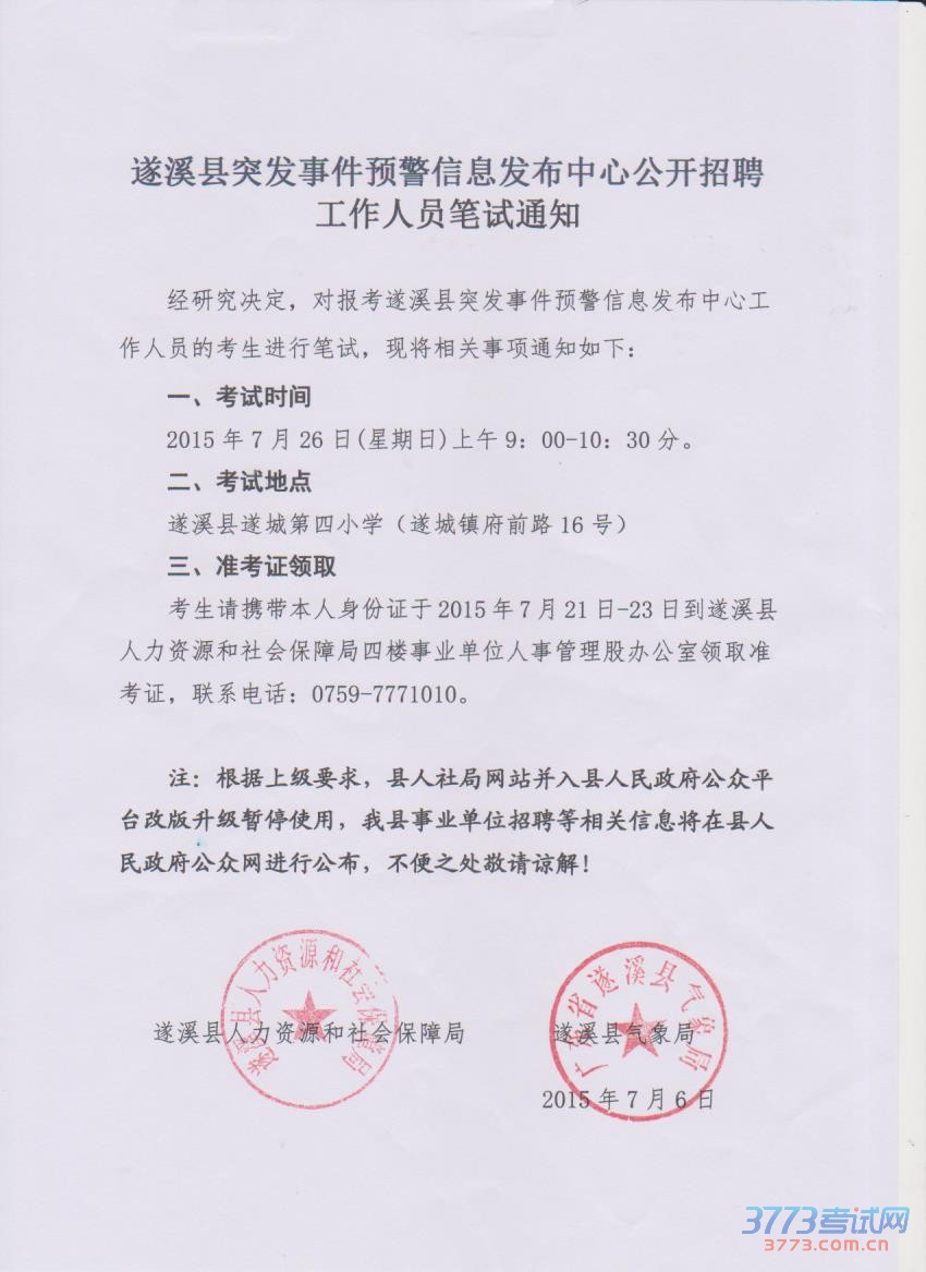 [图文]广东遂溪县突发事件预警信息发布中心2015招聘笔试通知