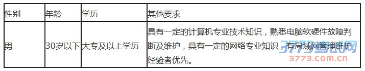 招聘网络管理员1人,负责我局办公电脑的一般维护,网络运行维护、办公设备日常维护及处理等工作。