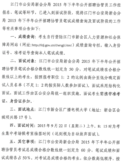 [组图]广东江门市公安局新会分局2015年下半年招聘协管员面试公告