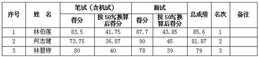 根据《桥中街2015年公开招聘党建指导员公告》,我街严格按照规定程序要求,按步骤分别进行了笔试、机试、面试工作,现将各位考生综合成绩公布如下: