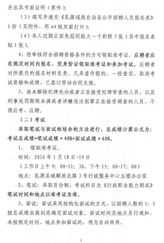 [组图]2015广东乳源瑶族自治县办事大厅窗口专职人员招聘公告