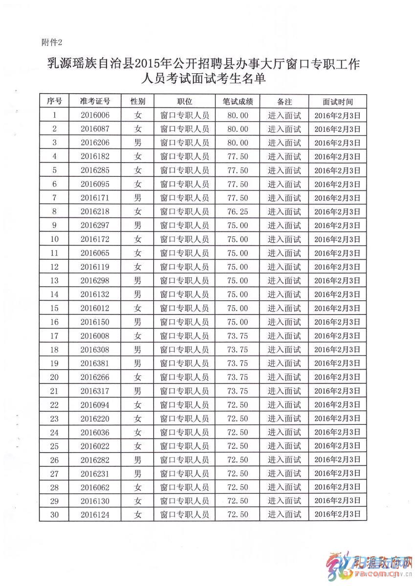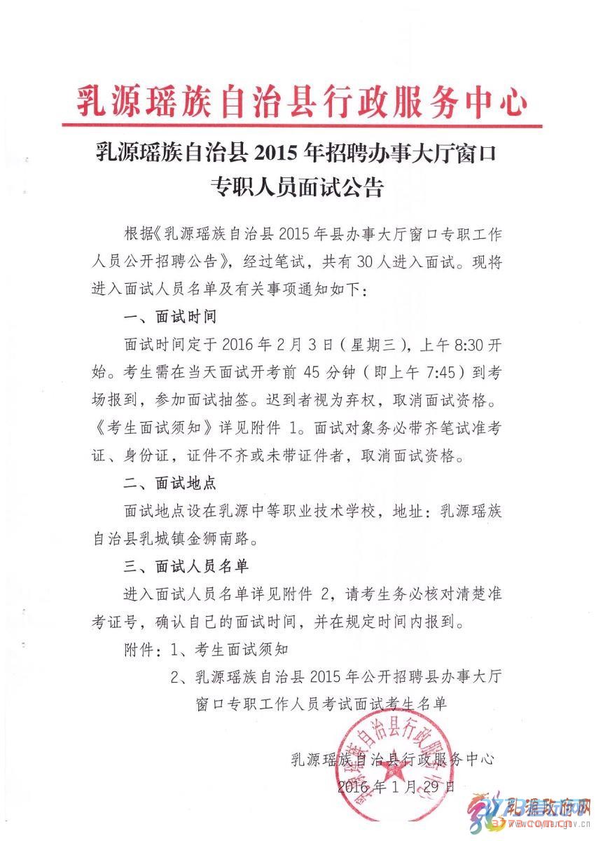 [组图]广东乳源瑶族自治县2015招聘办事大厅窗口人员面试公告