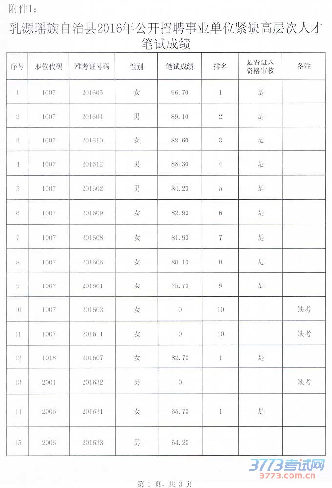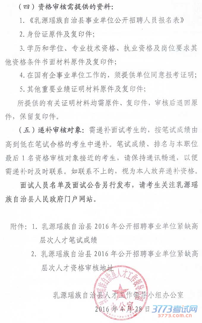 [组图]2016广东乳源瑶族自治县事业单位招聘资格审核公告