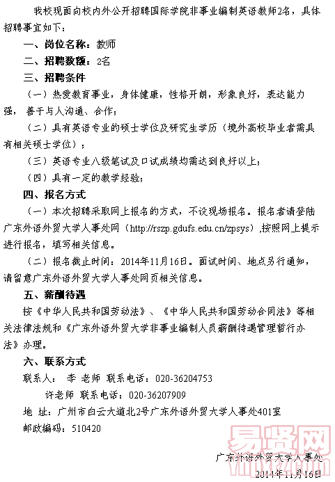 [图文]2014年广东外语外贸大学国际学院招聘非事业编制教师启事