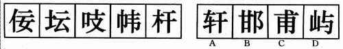 【解析】A。由图得知,题干文字都为7画,排除D;且都是左右结构,排除C;且偏旁在左边,排除B,A选项符合。