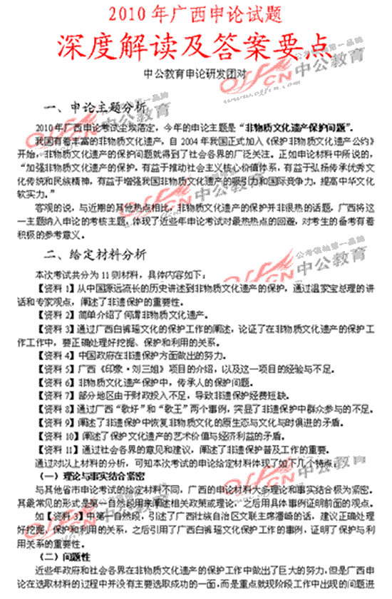 [组图]2010年广西公务员考试申论真题解读及答题要点分析