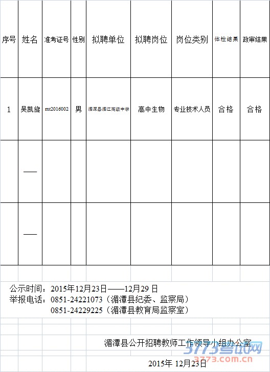 [图文]贵州湄潭县2015免费师范生和研究生拟聘用人员公示(第二批)