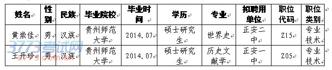 [图文]贵州正安县2014年教师拟聘用人员名单