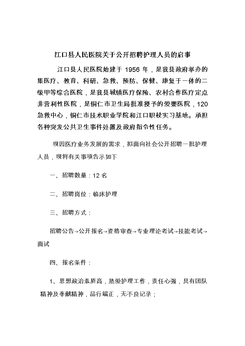 [组图]贵州江口县人民医院2014招聘护理人员的启事