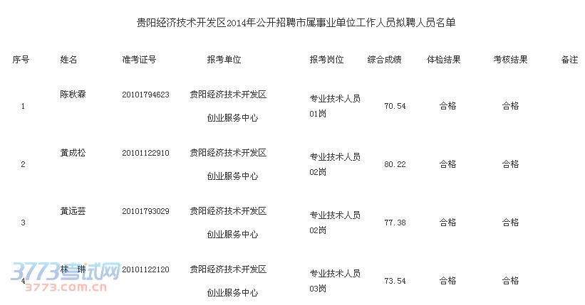 [图文]贵阳经济技术开发区2014年招聘市属事业单位拟聘用人员公示