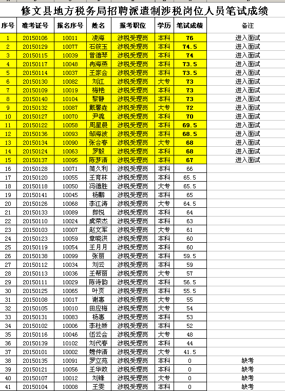 [图文]2015贵州修文县地方税务局招聘派遣制涉税岗位人员面试通知