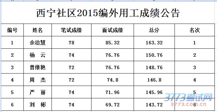 [图文]贵州六盘水钟山区西宁社区2015年招聘编外用工成绩公告