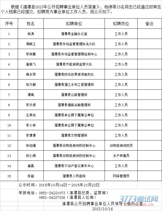 [图文]贵州湄潭县2015事业单位人员拟聘用人员公示(第二批)